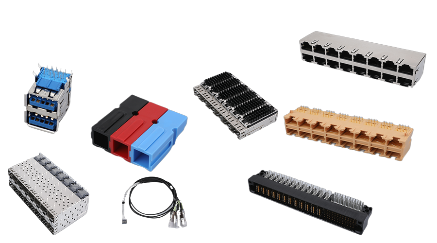 網絡連接器 (集成RJ45系列和普通RJ45系列)、高速連接器(SFP/QSFP/DSFP/CFP系列)、電源連接器、高速DAC和背板高速線纜組件、BTB連接器、網絡變壓器、RJ11連接器系列、USB&TYPE-C系列、精密五金件等。公司產品廣泛應用于包括“5G/6G”在內的網絡、通訊等行業,并致力于滿足新能源汽車、高端裝備、智能顯示、軌道交通、機器人等高精尖終端領域對連接器市場的需求。